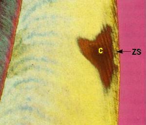obstante, examinando el diente extraído después de seco y limpio, puede observarse sin dificultad una pequeña región