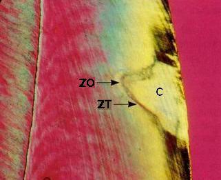 afectada por esta lesión incipiente aparece intacta y bien mineralizada. Este