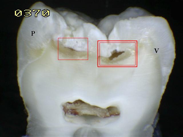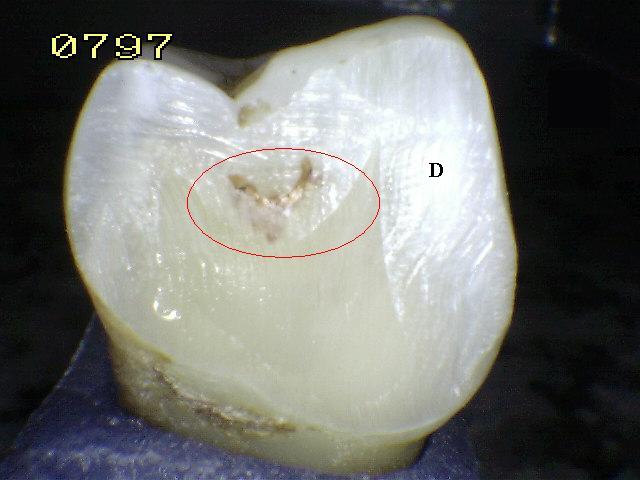del diente, para confirmar la presencia de una cavidad ( < 0,5mm.de