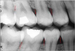 * Nota- La mayoría de lesiones confinadas al esmalte no se ven en las radiografías.