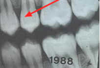 • Cuando el tercer molar se encuentra en proceso de erupción y se observa solo una parte de la corona clínica a la inspección visual, es de utilidad diagnóstica general, una imagen de una radiografía periapical de esa pieza dental en particular.