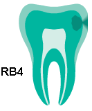 RB4 Radiolucidez que alcanza hasta el 1/3 medio de la dentina