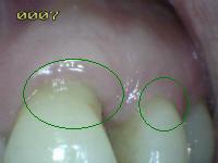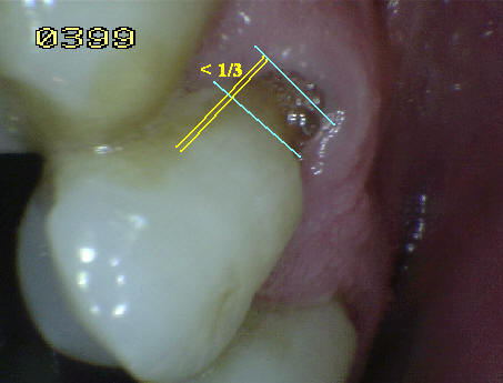 Código E: Si la superficie de la raíz no puede ser visualizada directamente como resultado de la falta de la  recesión gingival, entonces es excluida. Ver imagen inferior izquierda.  Superficies cubiertas completamente por cálculos deben ser removidos antes de determinar el estado de la superficie.