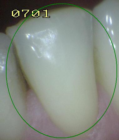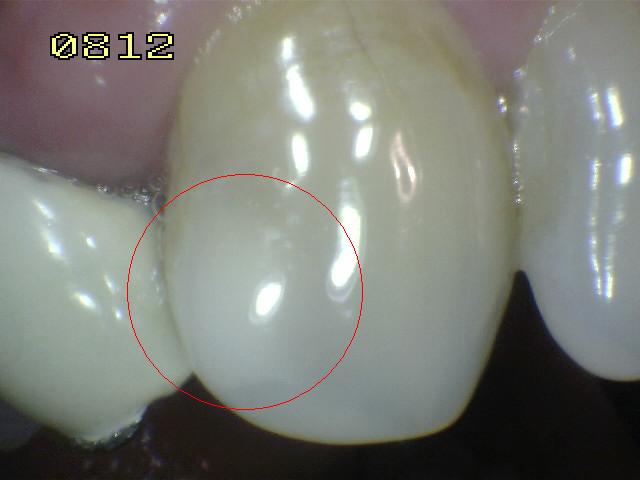 aparentemente intacta, o con pequeña micro-cavidad o perdida