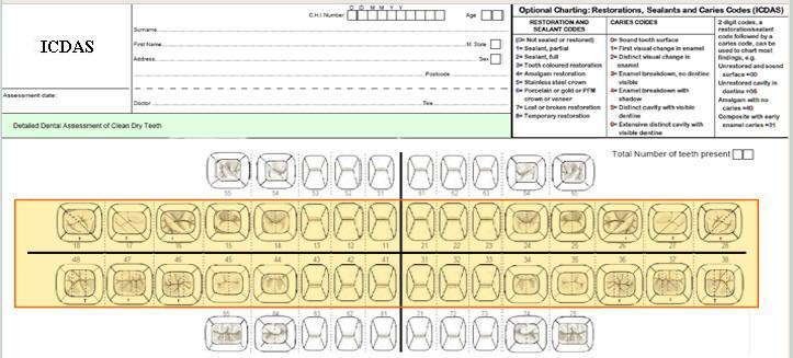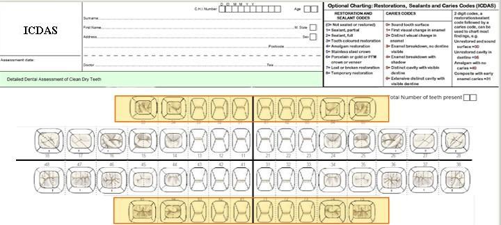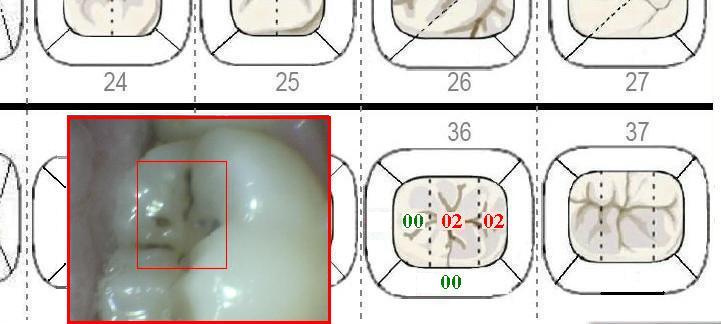 Usted utiliza el código ICDAS de la siguiente manera. El primer dígito corresponde al