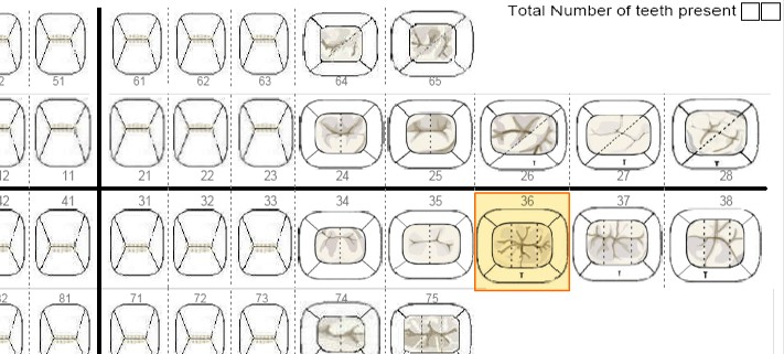 Hay un odontograma para la dentición permanente. Recuadro en