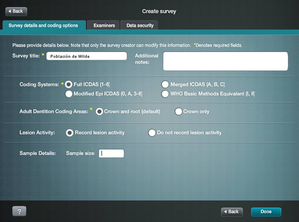 poblacion de Wilde, debe elegir el sistema de codificacion; que