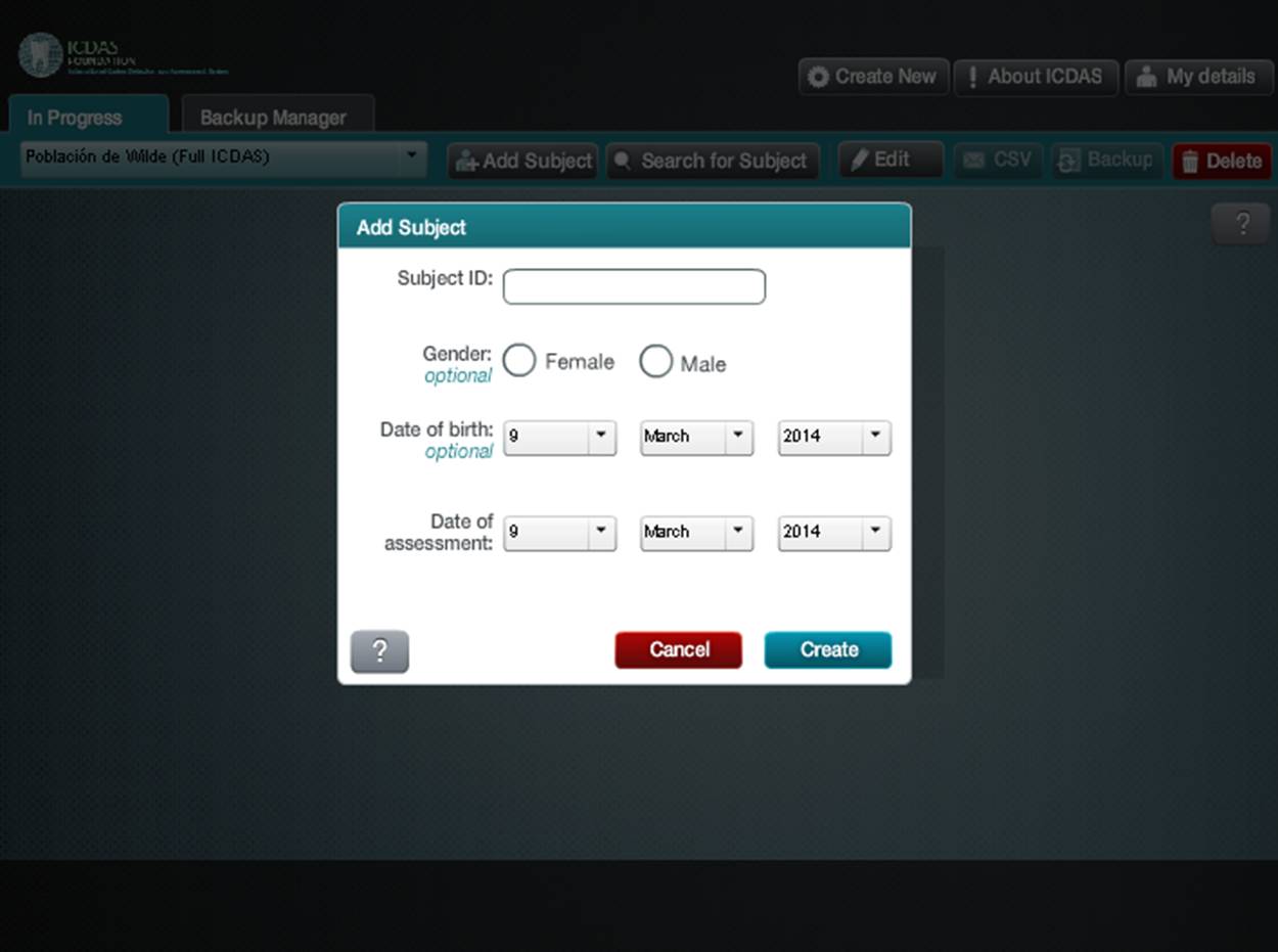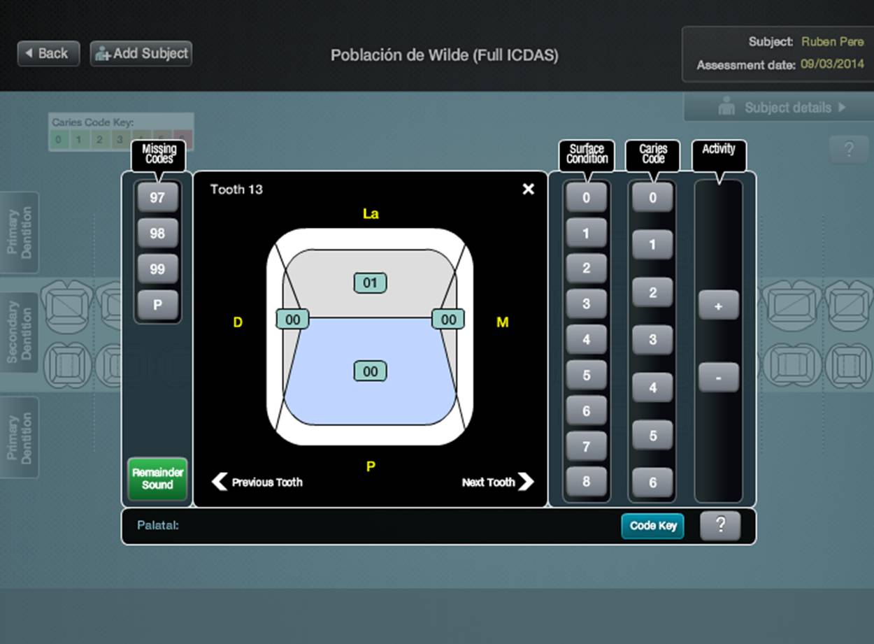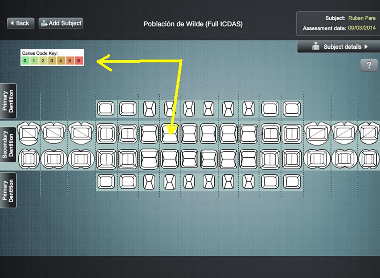 ICDAS completo y luego haga doble click en la pieza elegida para