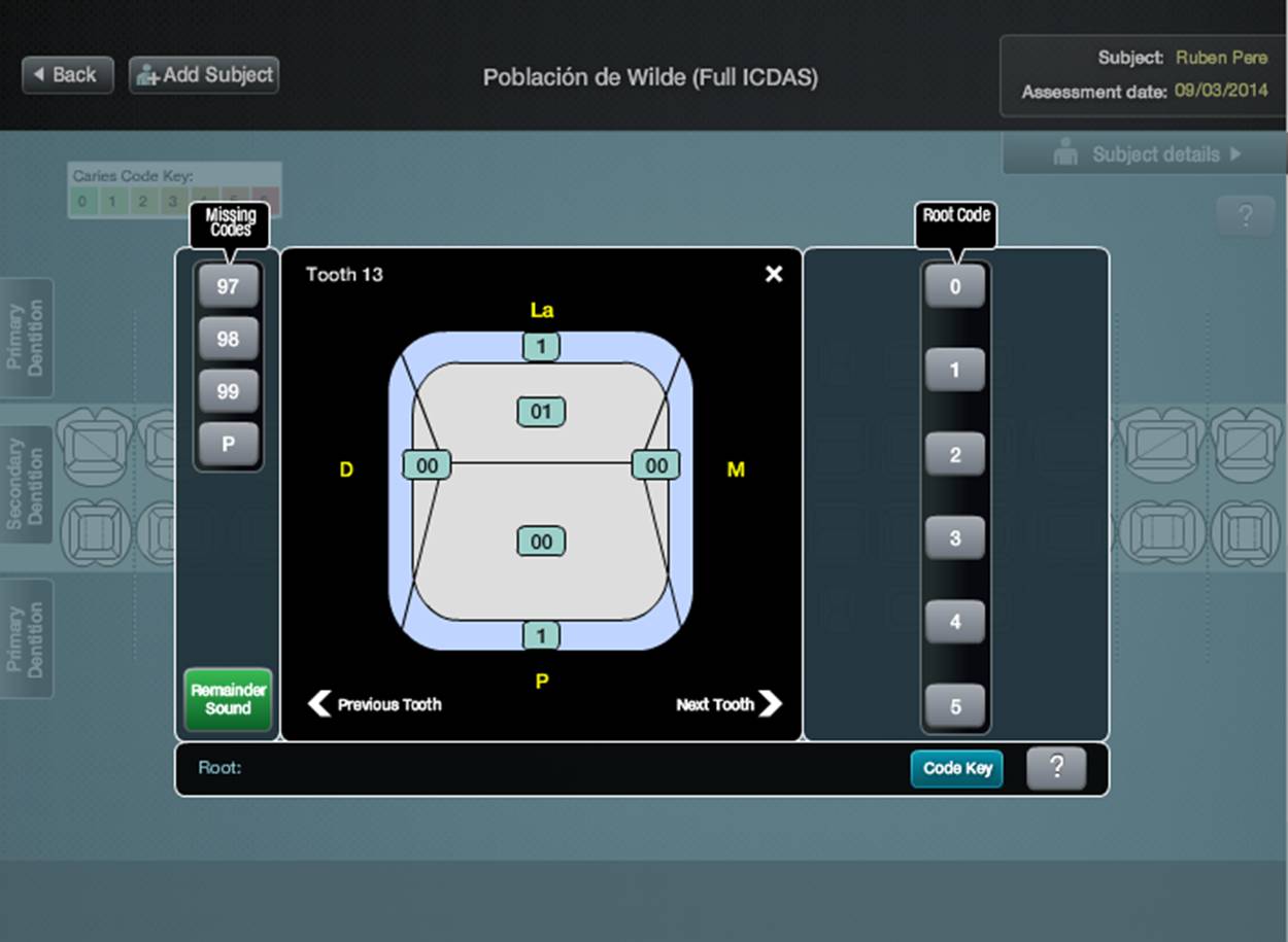 las superficie de la raíz y aparecerá el código de caries de raíz (Root