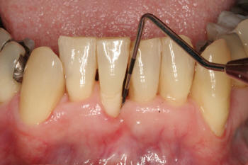 Inflamación moderada brillo moderado, enrojecimiento, edema e hipertrofia, sangre al sondaje (esperar 10 segundos.