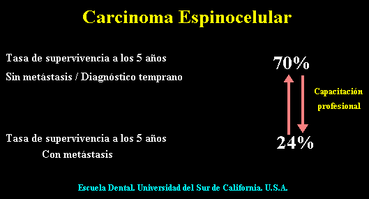El pronóstico para  el carcinoma oral sólo ha mejorado ligeramente durante los últimos 20 años. Este probablemente es el resultado del fracaso de médicos y odontólogos por no realizar un examen oral completo.