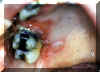 Note las numerosas áreas ulceradas en el paladar duro