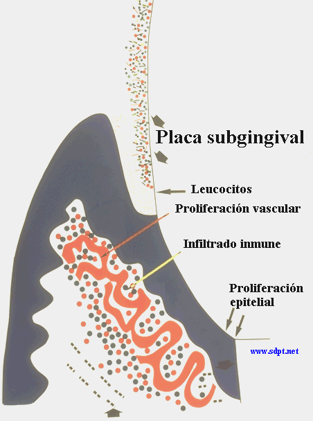 y las reacciones inmunes de la gingiva y el periodonto resulta en