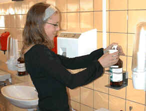 El sitio elegido para la distribución del colutorio fue el corredor de la escuela, por medio de un  dispensador de líquidos uicado en una pared. En dicho lugar  hay carteles que recuerdan a los niños de cómo enjuagar apropiadamente: realizar un buche de un minuto, una vez al día después de almorzar.