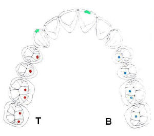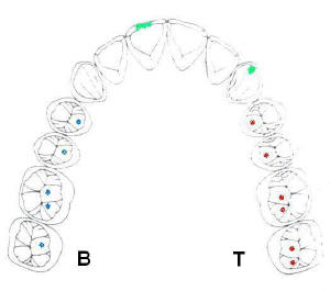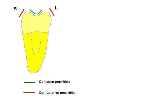 contactos sobre las inclinaciones interiores de cúspides