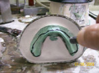 • *Se asienta la hoja de cera conformada como un herradura. Se flamea suavemente para ablandar  y dar forma de herradura a la cera