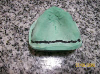 • Se coloca separador de alginatos, se ubica en posición la otra parte de la mufla; se vacía yeso blanco y se coloca la tapa de la mufla.