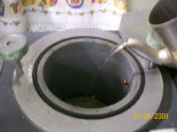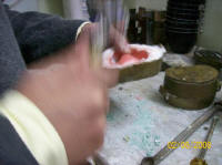 • Se realiza el vaciado. El yeso no debe interferir en el cierre de la mufla, por ello el borde de bronce debe estar limpio de yeso