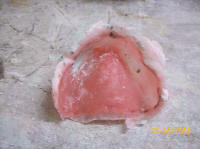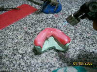 • Desgaste del modelo primario superior , en la zona línea de la "A", con forma de “mariposa” para compensar la contracción del acrílico de termo polimerización.