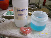 • En la foto inferior los producto utilizados: Detergente (izquierda) Separador a base de alginato (derecha)