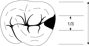 El tamaño del apoyo oclusal no debe exceder un tercio de la superficie buco lingual. Esto se realiza para evitar las interferencias dentarias durante los movimientos excéntrico de la mandíbula. El tercio medio oclusal es la zona más baja para tallar un apoyo.