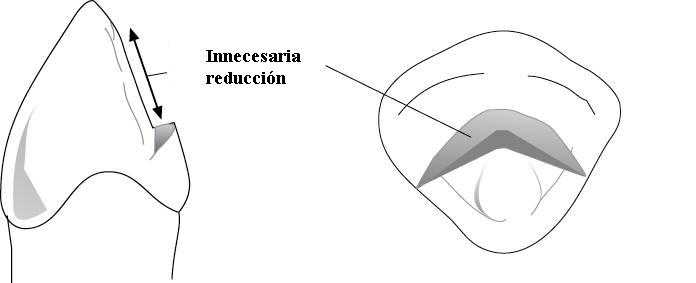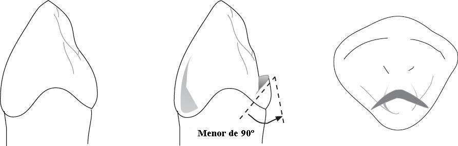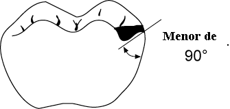 El ángulo comprendido entre el piso del apoyo oclusal y el reborde marginal debe ser menor a 90º.  Para mantener la axialidad de fuerzas.