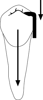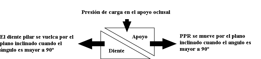 El tallado del apoyo oclusal y el plano guía es necesario para mantener la axialidad de fuerzas. Entendemos a la axialidad de fuerzas, como la fuerza que se transmite a lo largo del eje mayor del diente pilar. Ver gráfico derecha