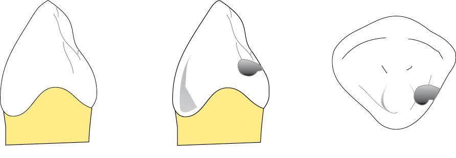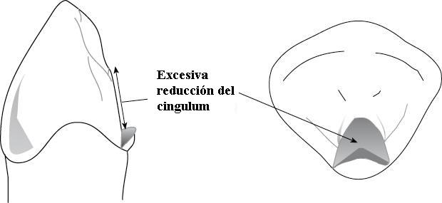 Si no hay una superficie adecuada para tallar el cingulum del canino inferior. Se puede realizar un apoyo en material de resina compuesta con la técnica de grabado ácido: