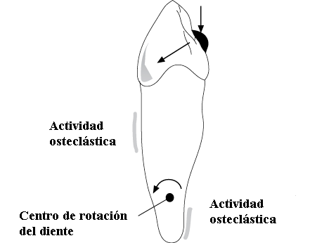 Actividad osteoclástica durante la carga de la prótesis, cuando el apoyo no tiene las condiciones de axialidad de fuerzas: