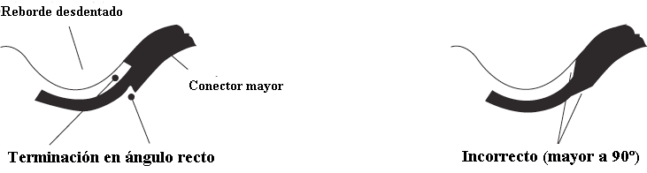 conector menor debe unirse al conector mayor en ángulo recto y cubrir un área