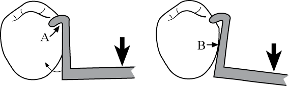 • Si el apoyo estuviera en el margen distal el volcamiento de la pieza distal sería hacia distal, separando el diente pilar del adyacente.