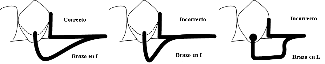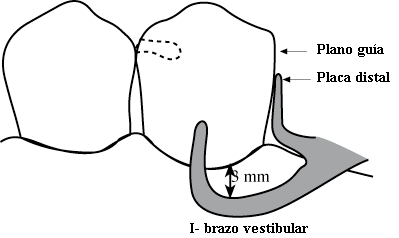 La curva de la I-brazo vestibular debe estar situado por lo menos 3 mm. del margen gingival. Esta distancia será para  evitar atrapar alimentos y proporcionar suficiente longitud para la elasticidad necesaria para salvar el ecuador del diente. Dado que el punto de retención se encuentra por debajo del mismo.