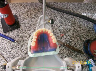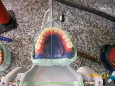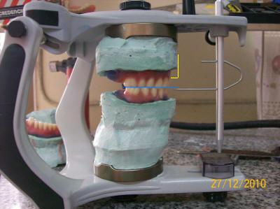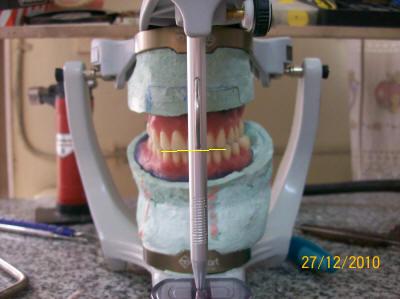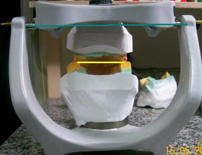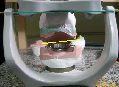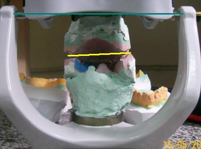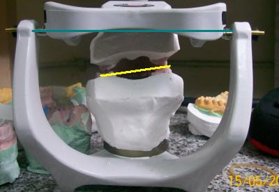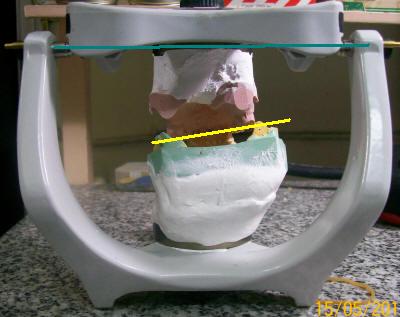 bisagra, determinada por la línea de los cuellos gingivales(Amarillo) |