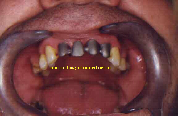 Perno muñón colado en los diente pilares, permite un mayor desgaste sin pérdida de resistencia. 1 mm de metal y 2,5mm de opaquer y porcelana