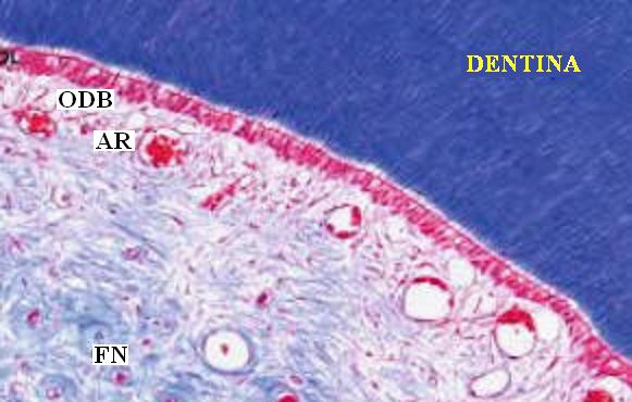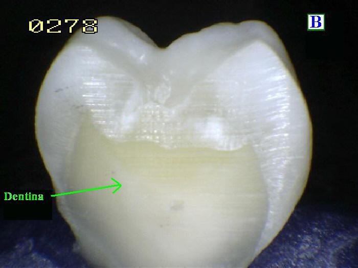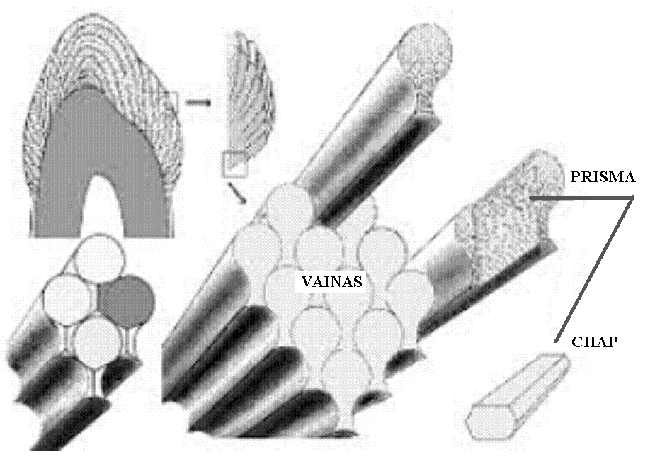 de 2.5 μm cerca de la pulpa, a 1.2 μm en la