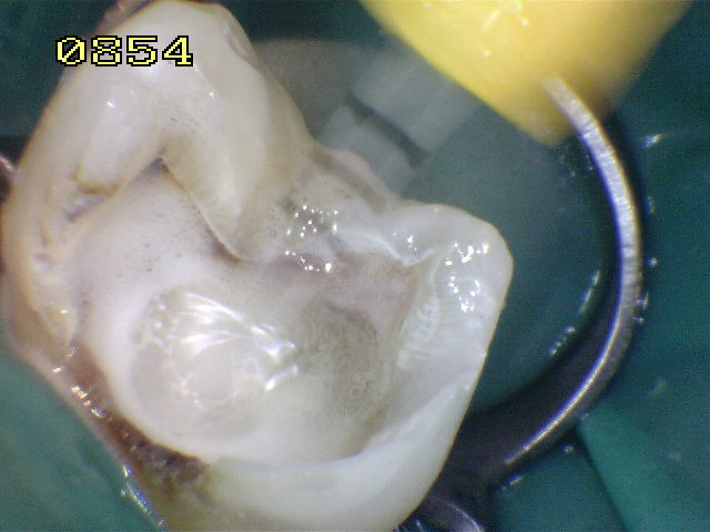 Un solo conducto de inicio y caries extensa en mesial , distal y palatino. |